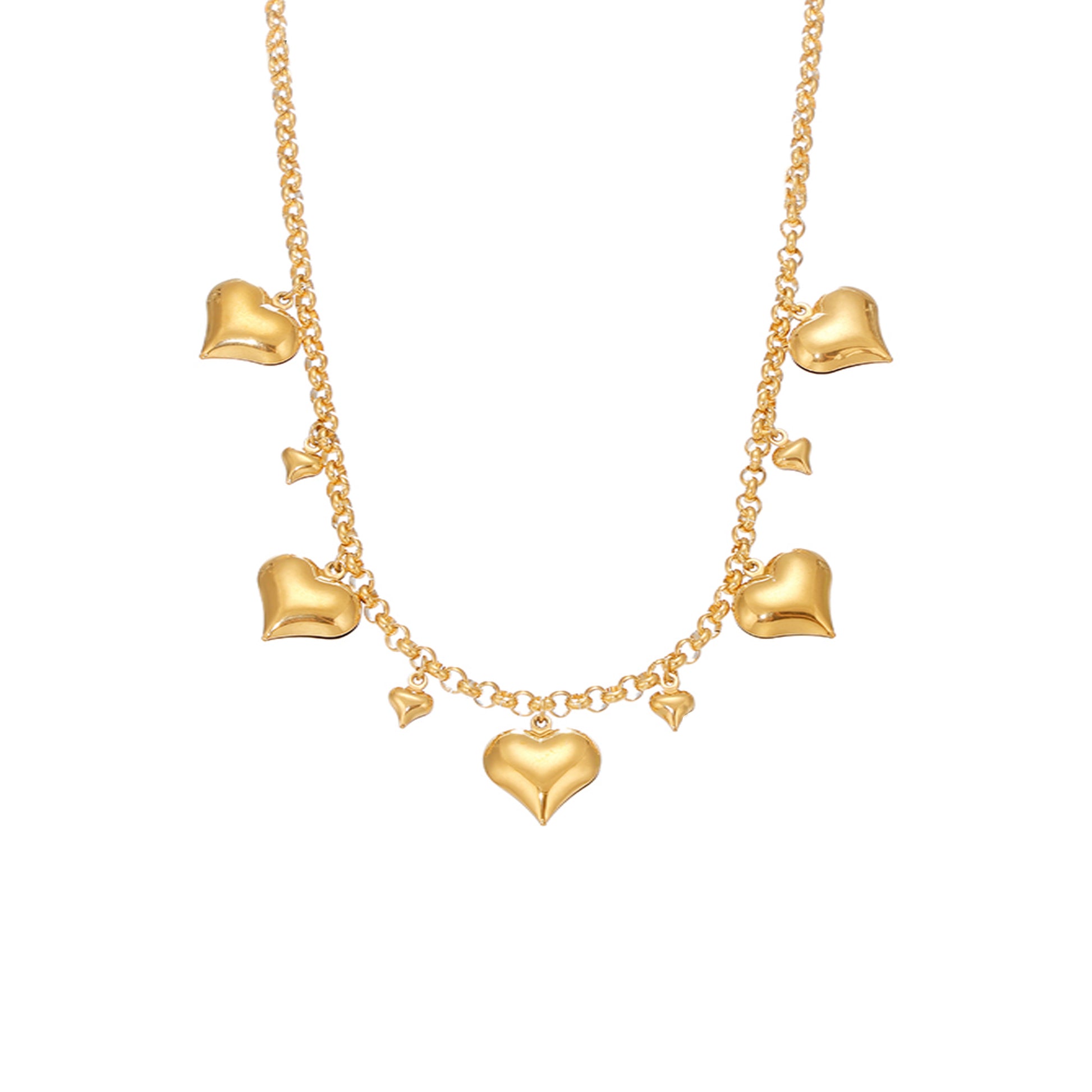 Each design features delicate heart motifs, plated with 18k gold or silver for lasting shine.